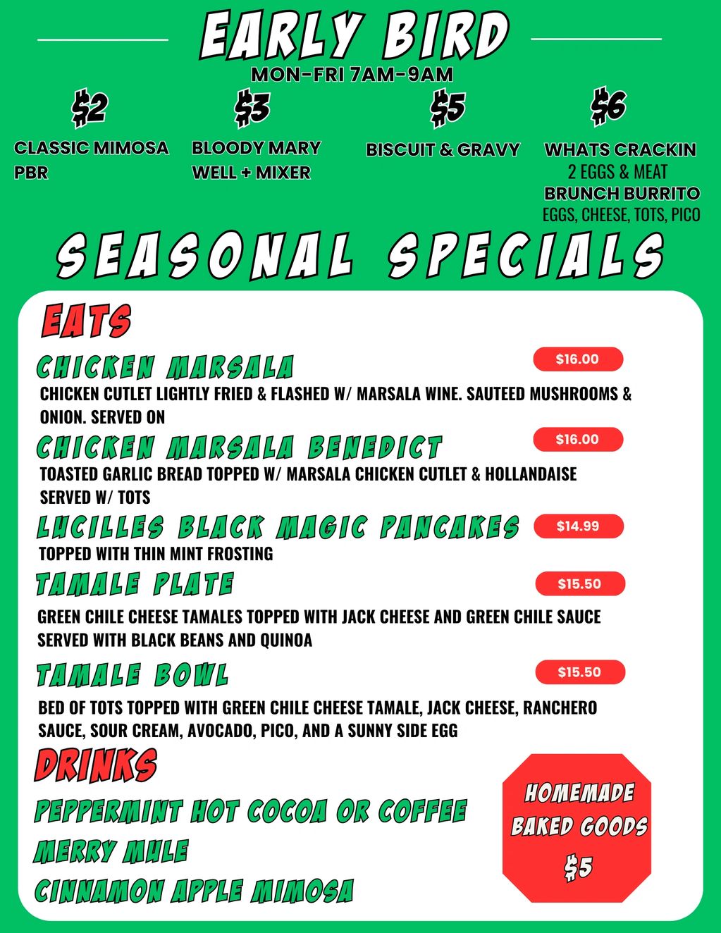 Check out our menu! Breakfast, brunch and lunch all throughout the menu!